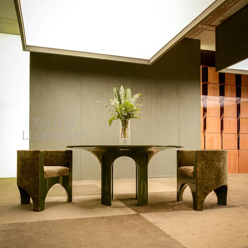 Modern design armchair with frame in lacquered wood and luxurious and defining upholstery work.