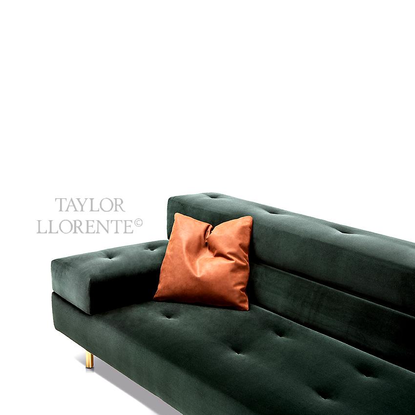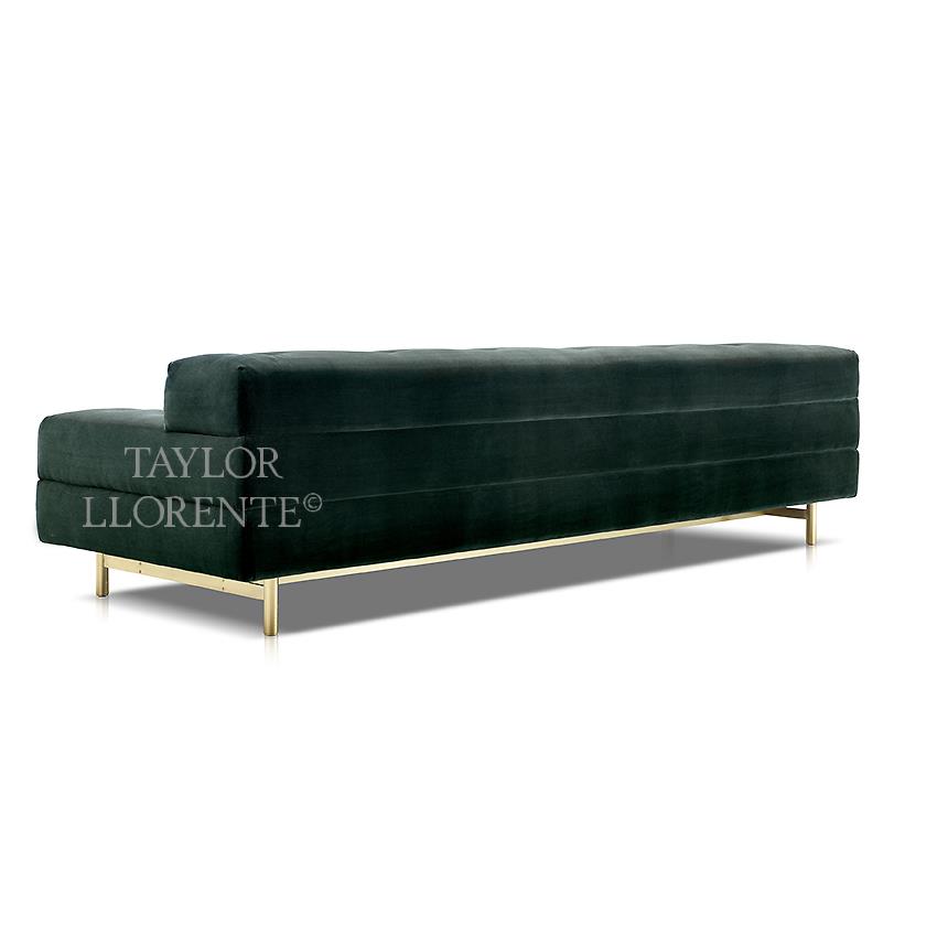 The base structure in brushed or polished brass with handcrafted visible bespoke screws completes this contemporary design sofa.