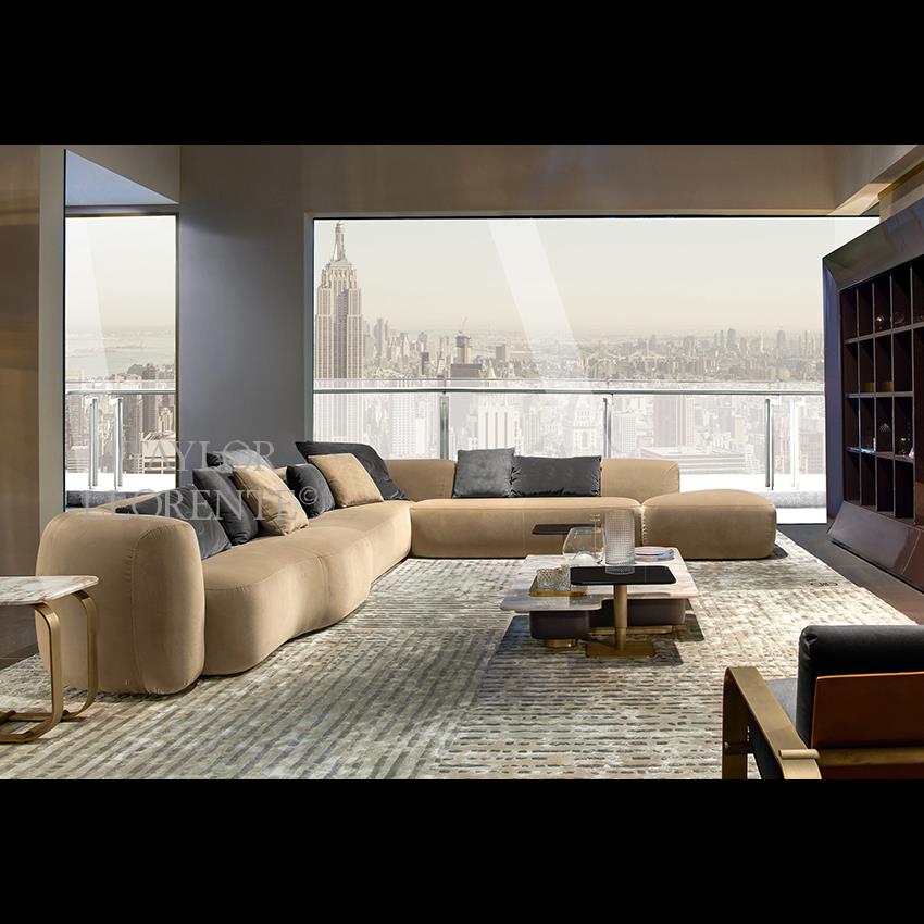 Sofa structure created in wood covered in multiple density rubber and air soft upper layer and finished in a layer of goose down. Top layer of seat cushion finished in 3 cm of memory rubber for tight tailored upholstery finish as pictured.