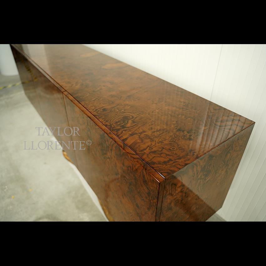 Priced below with the doors (inside and out) in high gloss burr walnut, with top and sides of sideboard in a bronze lacquered wood finish (also available in all RAL colours and in either high gloss or satin finish).