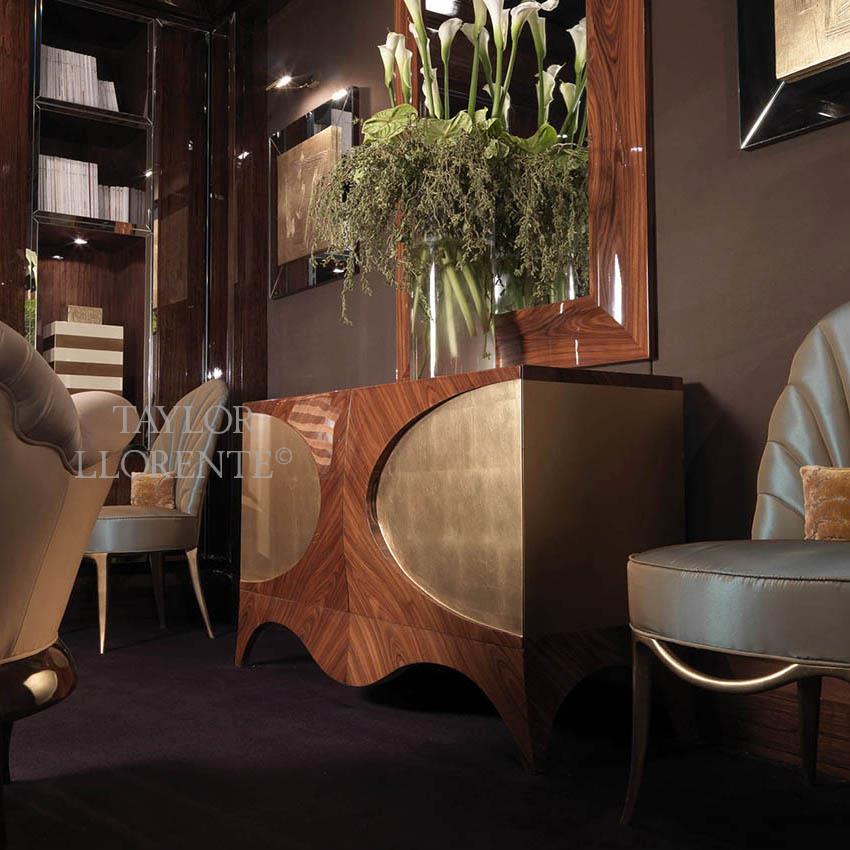 High end credenza created in Luxury Palisander wood and gold leaf.